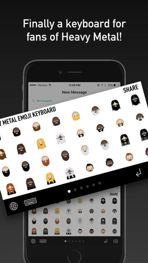 Download and enjoy the greatest emoji and sticker keyboard of all time. Sick of all the pop stars having all the fun? We are too! Justin Bieber? Who's that? Keep it metal!