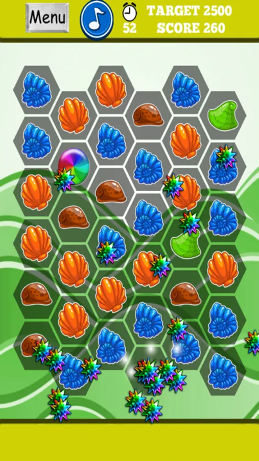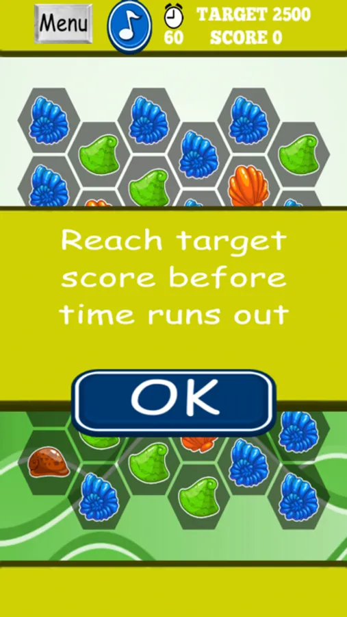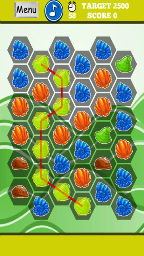 Slide your finger through the corals to combine them and complete missions. Your mission is get the target score to complete the level. Be fast when the level is based in time and when the level is based in number of movements. Calculate exactly what movement will be the best.