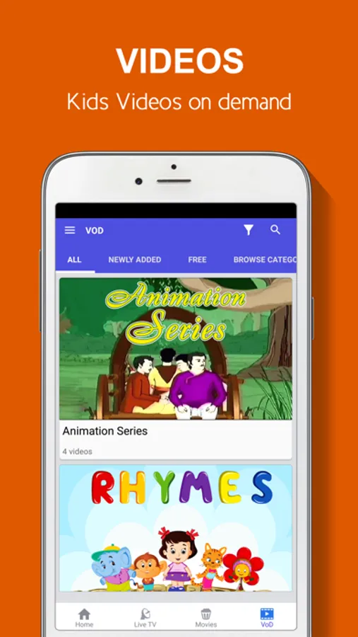• Live TV, Kids videos, educational videos, animated series and movies for kids globally.