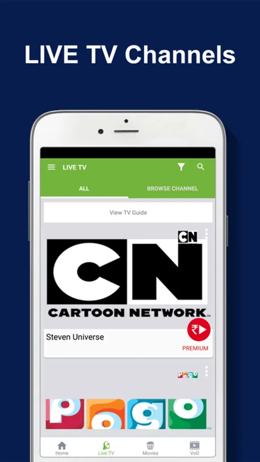 • Watch Live TV Channels –Cartoon Network, Pogo Network and many more