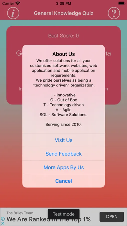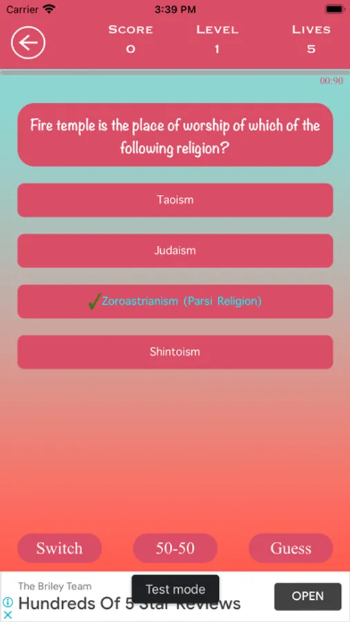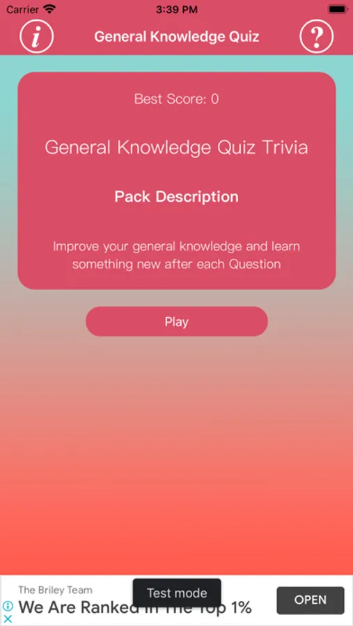 Game is fully loaded with multiple packs of quiz, each pack have 10 levels to play and in each level users will be asked 10 Questions.