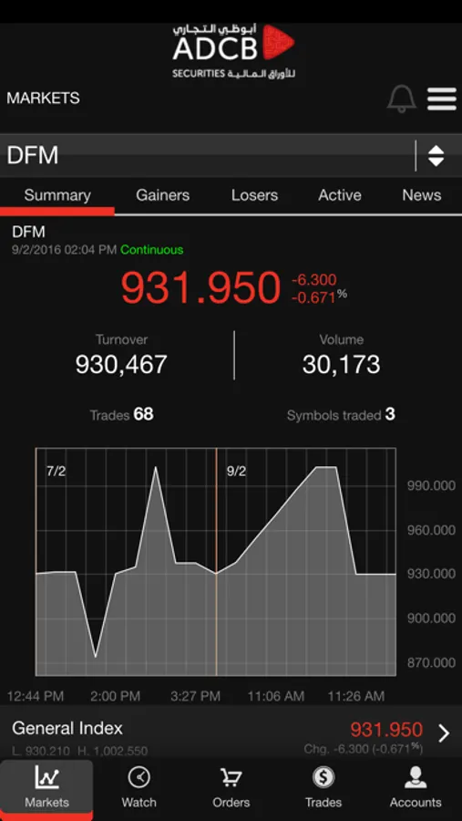The ADCB Securities app is a mobile trading tool for you to track the market in real time, analyze trends as they happen, and take action when the time right. With this mobile application you can easily access local markets and place your orders from wherever you are, at any time you want (local markets timing) and in the most friendly and secure environment.
