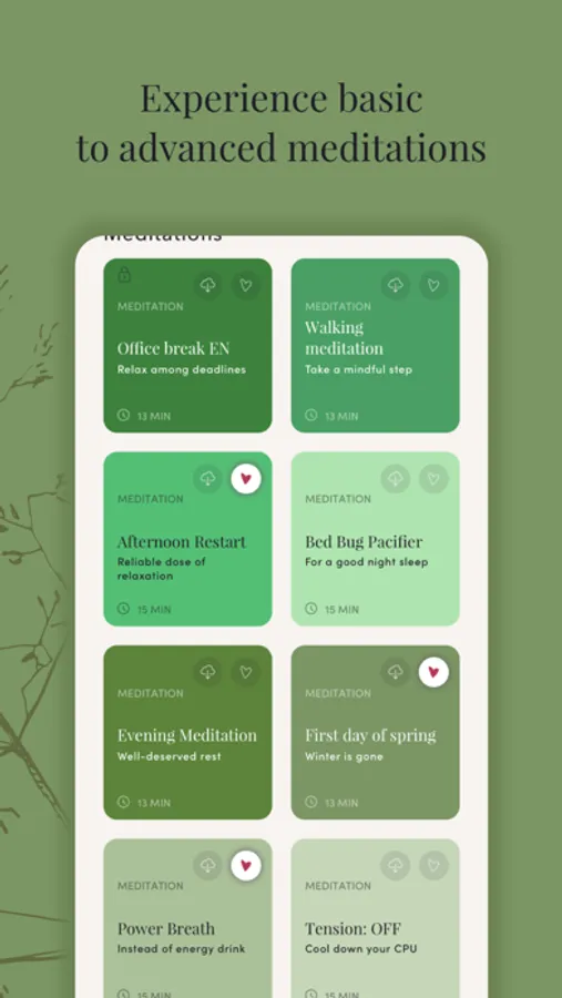 MEDITATION with INTŮ is simple, straight and religion-free. Relax with single meditations and get calmer as move on to extended and advanced courses. At the end of each session you'll get a useful hint to help you maintain the meditative peace in your daily life.