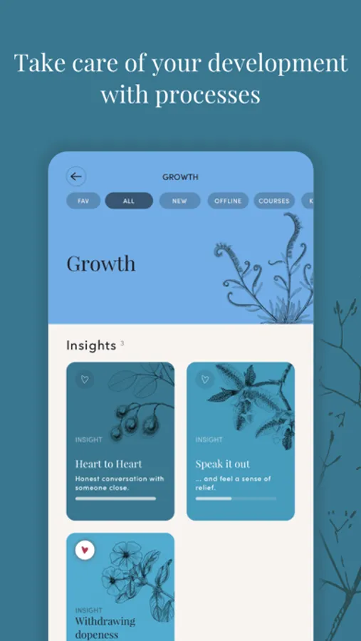 INSIGHTS are unique step-by-step introspective excercises tailored to support your awareness and self-discovery. Get in touch with yourself and tweak your habits, mind patterns, relationships or self-esteem.