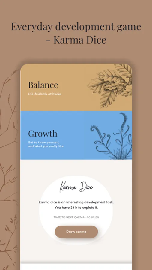 KARMA DICE gives you a fun & mindful challenge each day. Your mission - should you choose to accept it - is to accomplish the task within 24 hours and collect karma points assigned to it. Tasks get more challenging the more you play.