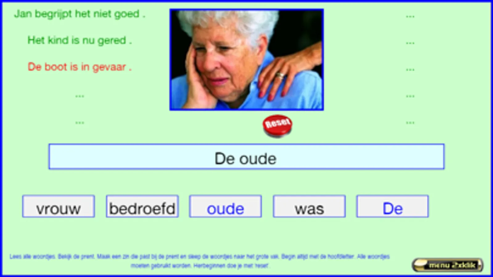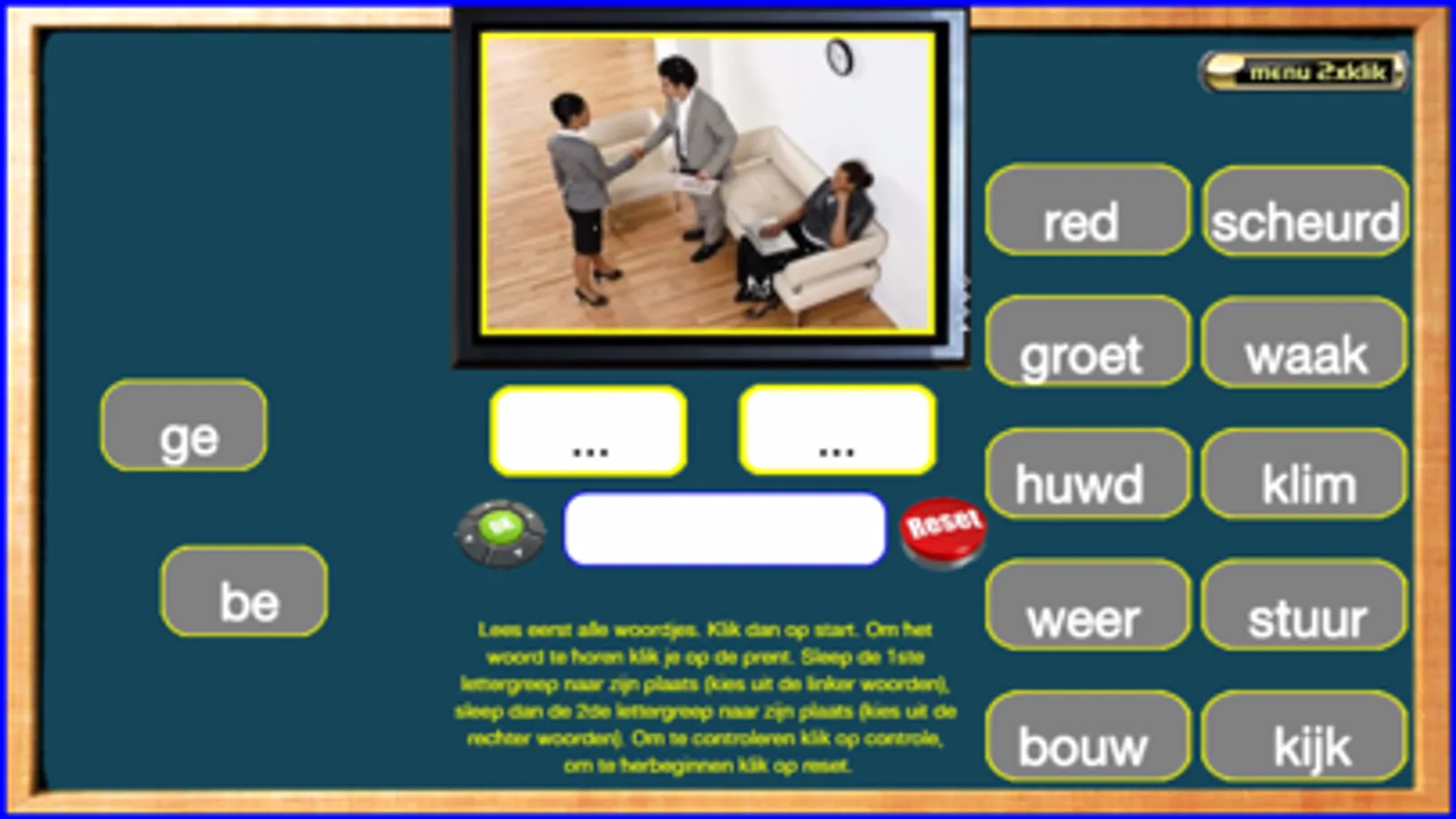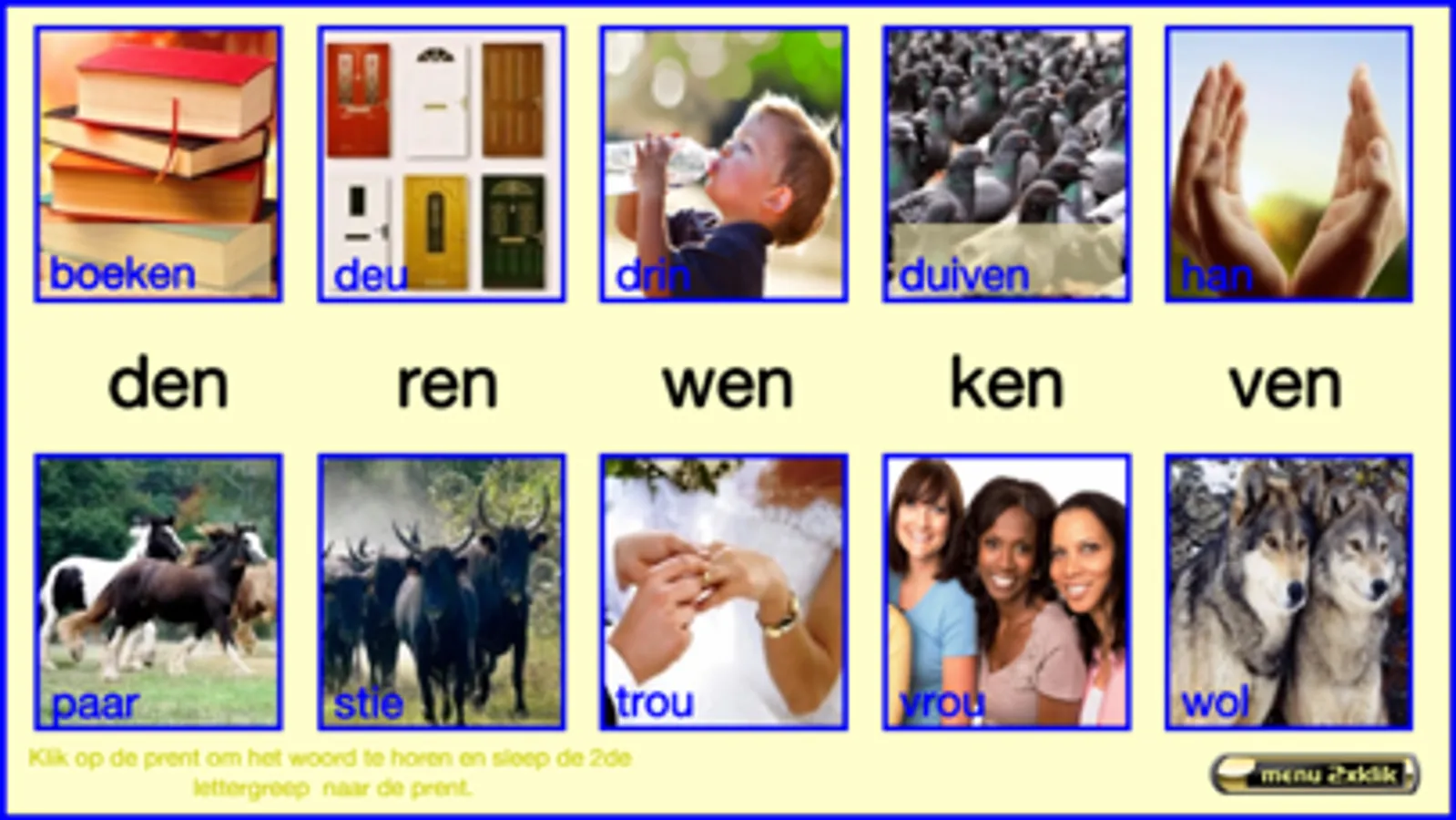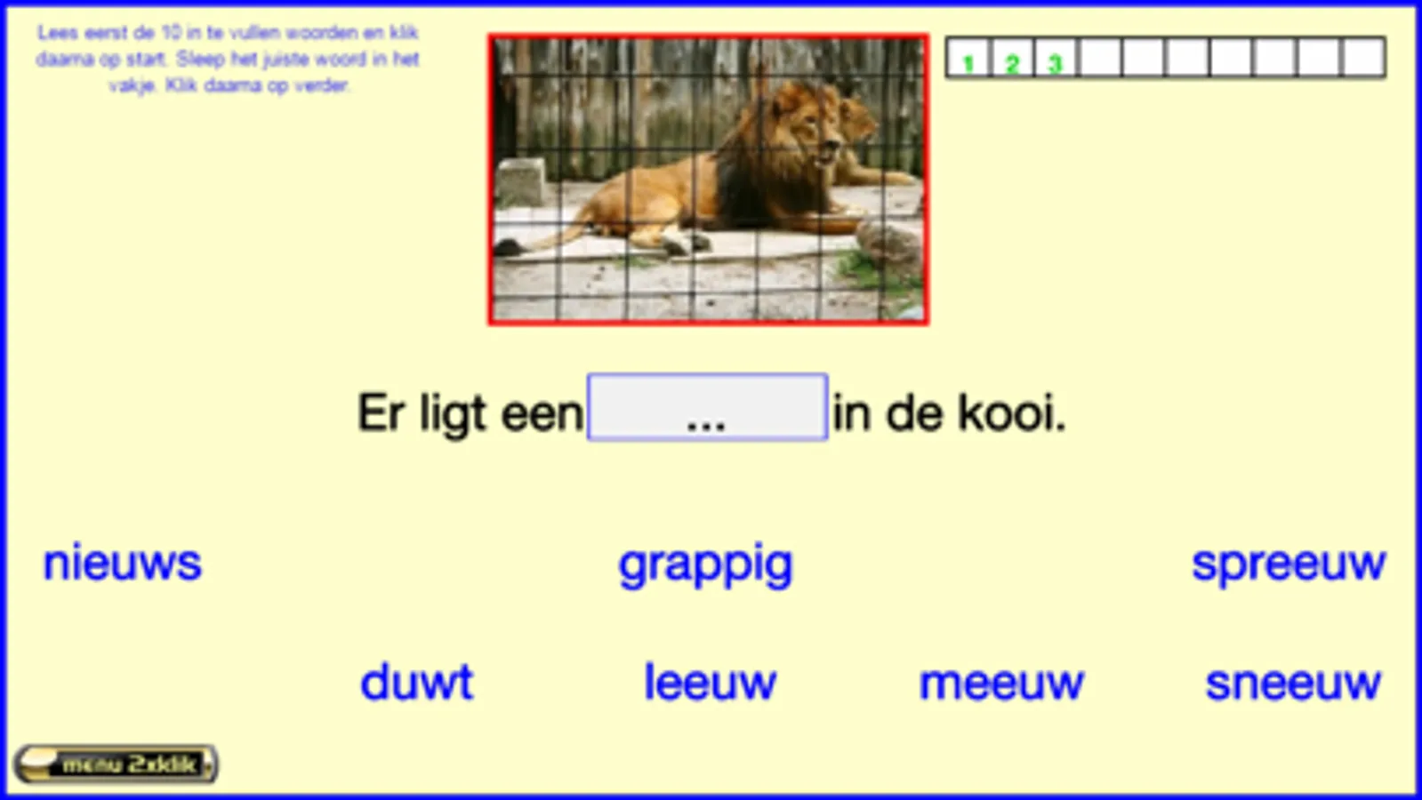 Deze reeks oefeningen volgen de leesmethode Veilig Leren Lezen van uitgeverij Zwijsen (een veelgebruikte leesmethode in België en Nederland). De oefeningen volgen de 2de maanversie. In kern 10 leren de kinderen vooral woorden met 2 lettergrepen zoals ‘ta-pijt, vlin-der, bal-len, …’ . Ook woorden met ‘–ieuw, -eeuw en –uw’ worden ingeoefend. Zij maken ook kennis met woorden met een open lettergreep zoals ‘va-der, ko-pen, …’ . Ik heb deze oefeningen gemaakt steunend op mijn 25 jaar ervaring als leerkracht 1ste leerjaar. De meeste oefeningen worden zowel visueel als auditief ondersteund. Billiau Danny.