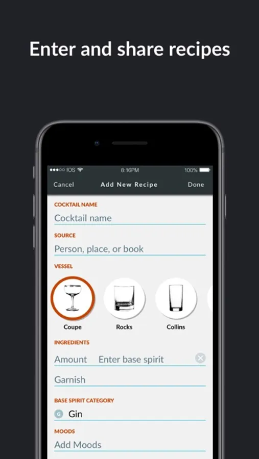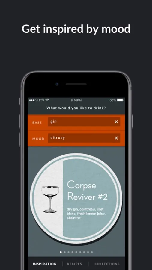 - Get inspired to make something different, with suggestions combining base spirits and moods.