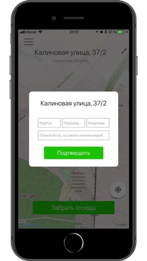 - возможность выбрать адрес, используя карту;