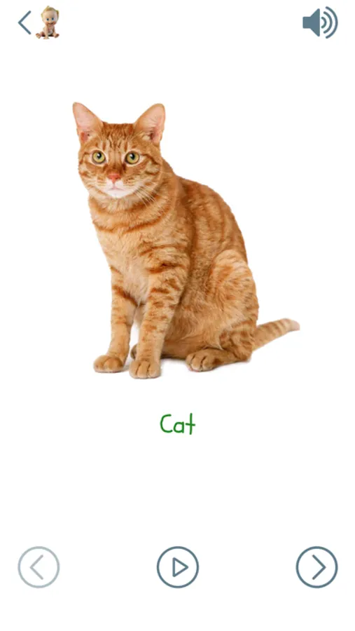 - There are 6 baby flashcard categories(At home, Food, Animals, Toys, Nature and On-Wheels).