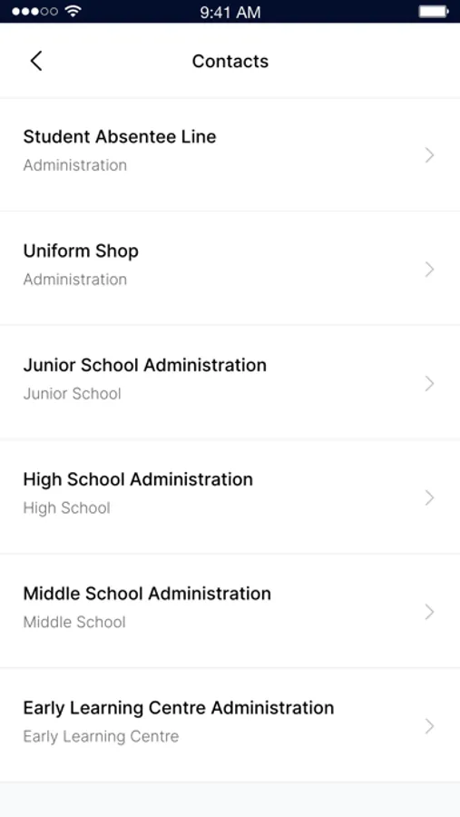 Call and email the school directly from TSC App. All key contact details are listed. You can also email and notify your child’s absence through the app.