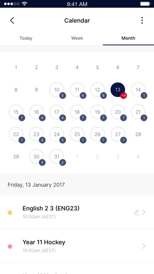 The School Calendar contains details on events and key dates at the School. Click on the event to see further details and information or search for an event. The calendar can also be used as an eDiary with students having the ability to add homework tasks for completion. The calendar menu item will show how many events are in your calendar for that day.