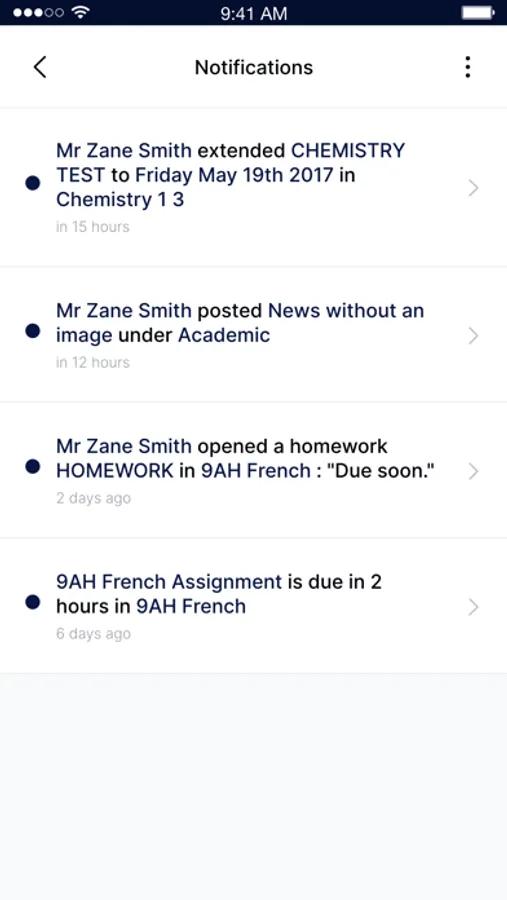 Students and staff will see a reminder in the app to any due work and its relevant date within Schoolbox.