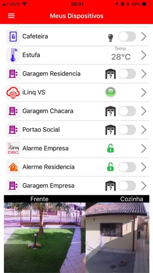 - Notificações push para eventos (arme, desarme, disparo, acionamento, abertura, etc)