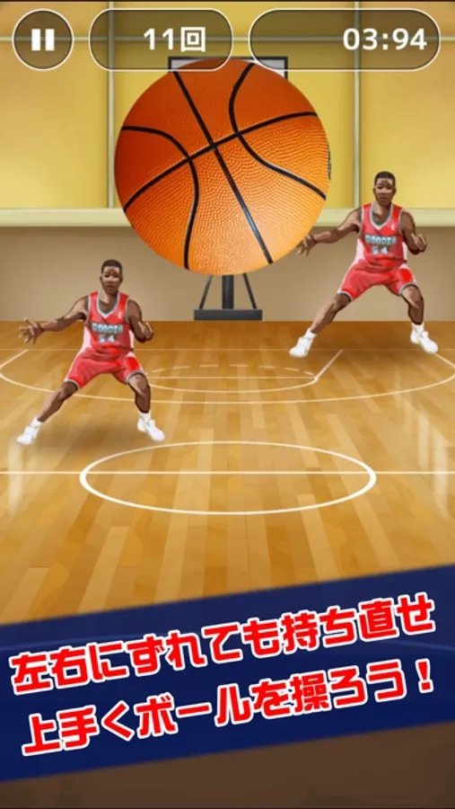 指でバスケットボールを動かして開始場所を決めたら指を離してドリブル開始。