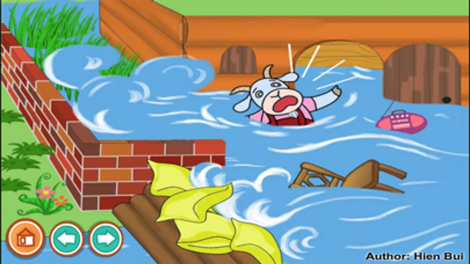 6. The old goat continue to say: "I think you should make a dike to prevent the water from flowing to his house, then ask him to pay you money each month to ask you for water. Then you don't have to work but you can have money for living." "But the cow is really good to me, I don't think I can do this". Little goat says back.