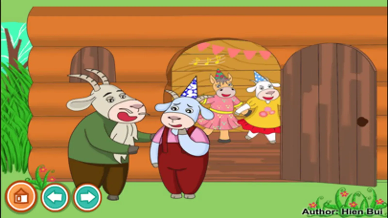 4. The happy life of the two good friends seems to last forever until one day little goat opens a party. He invites many friends to come: little horses, the buffaloes and his relatives. Of course the cow - his close friend is also invited to come.