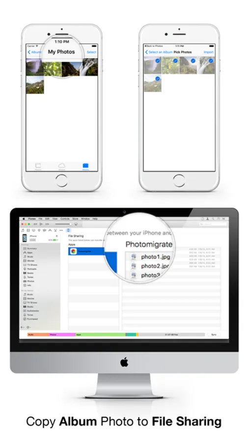 NB: You must connect your iOS device to iTunes and use File Sharing feature to import or export photos or videos.