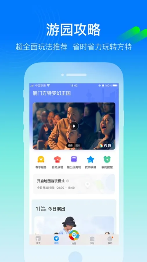 “方特旅游”是华强方特集团为旗下方特系列主题乐园量身打造的官方智慧游园APP,为您提供方特门票年卡预订、酒店预订、乐园营业时间、项目等候时间、地图导航、尊享服务、云排队、在线点餐、停车缴费、玩法攻略、活动资讯等诸多功能,助您轻轻松松,欢乐畅游。