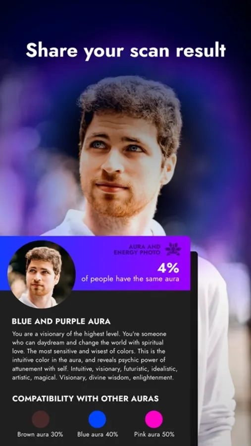 the app will give you the picture of the person's aura and a small description