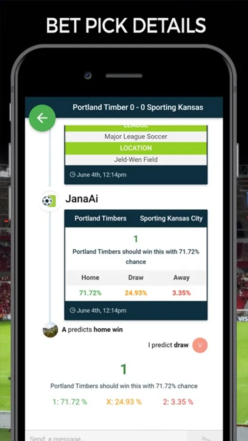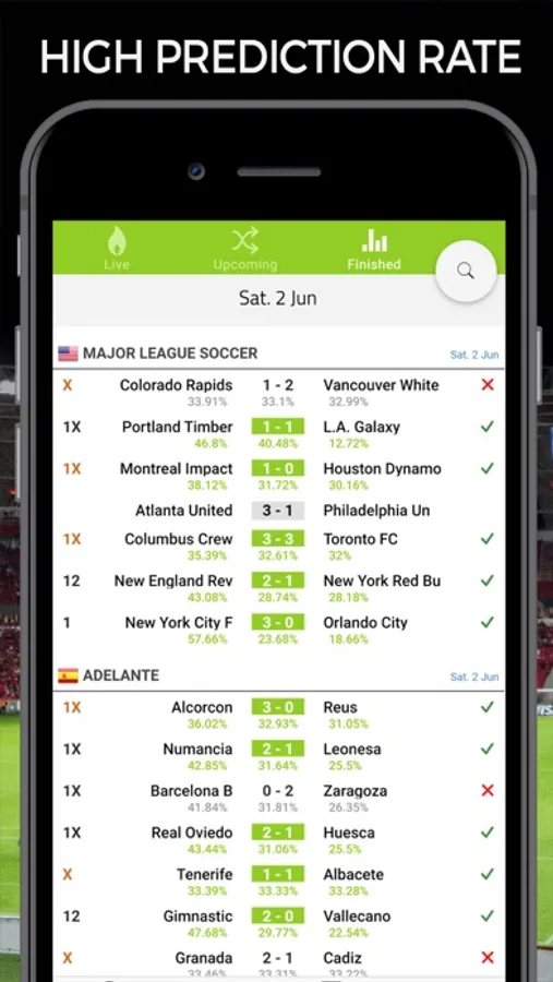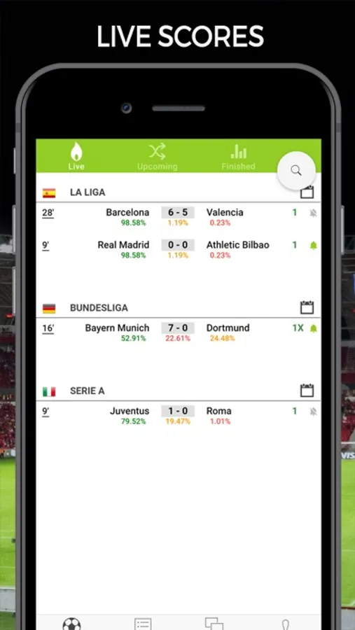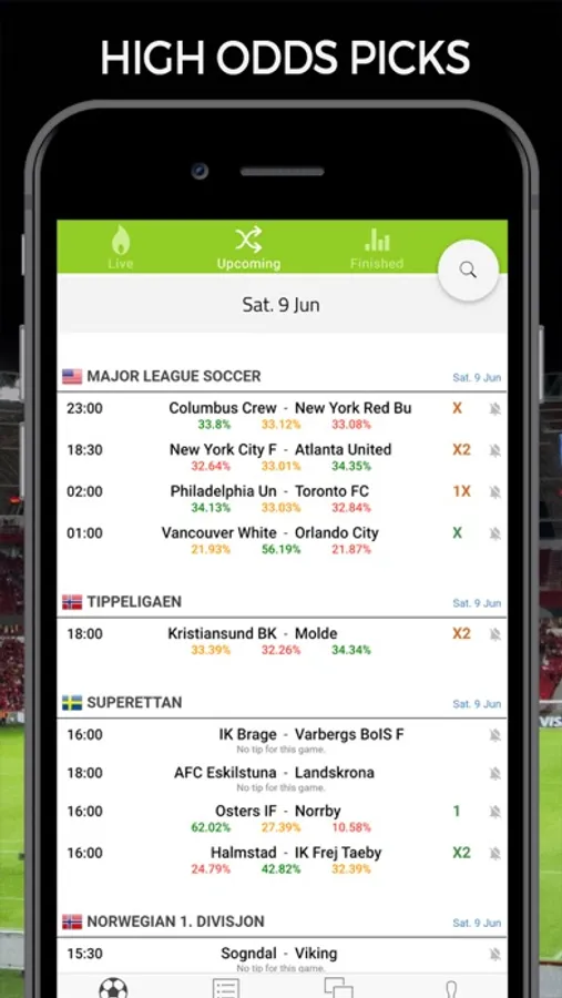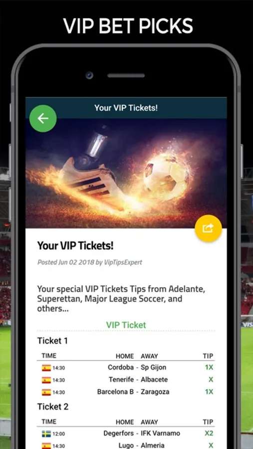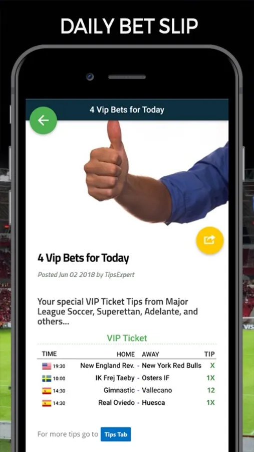 Besides serving tips in the format of 1, X, 2 the app also give a full slip predictions.