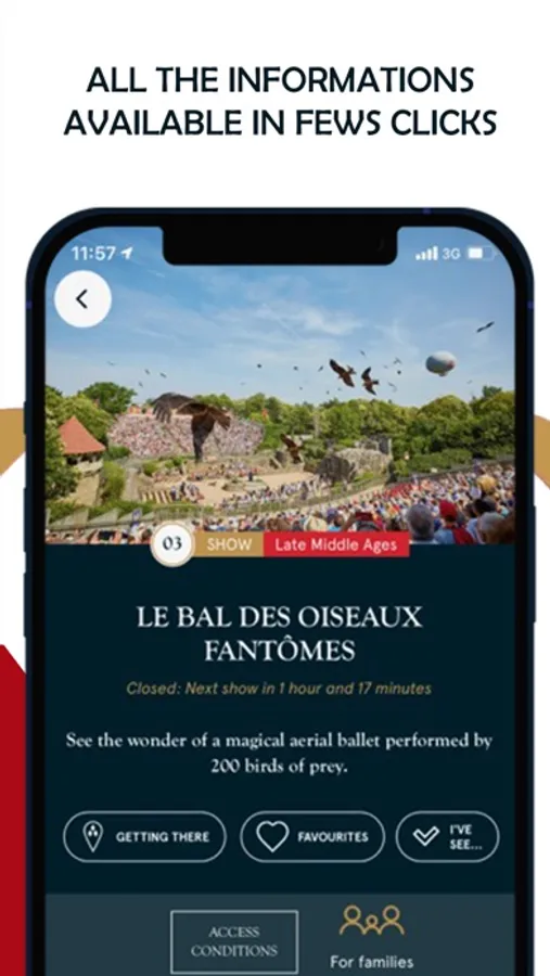 The Puy du Fou France application is available in 5 languages: French, English, Spanish, German and Dutch.