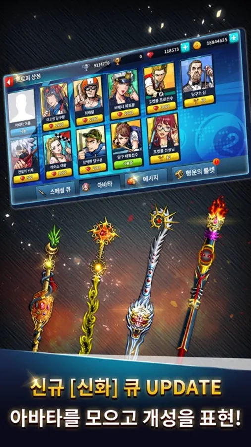 - 다양한 큐와 캐릭터! 자신만의 실력을 만들어갈 수 있는 게임!