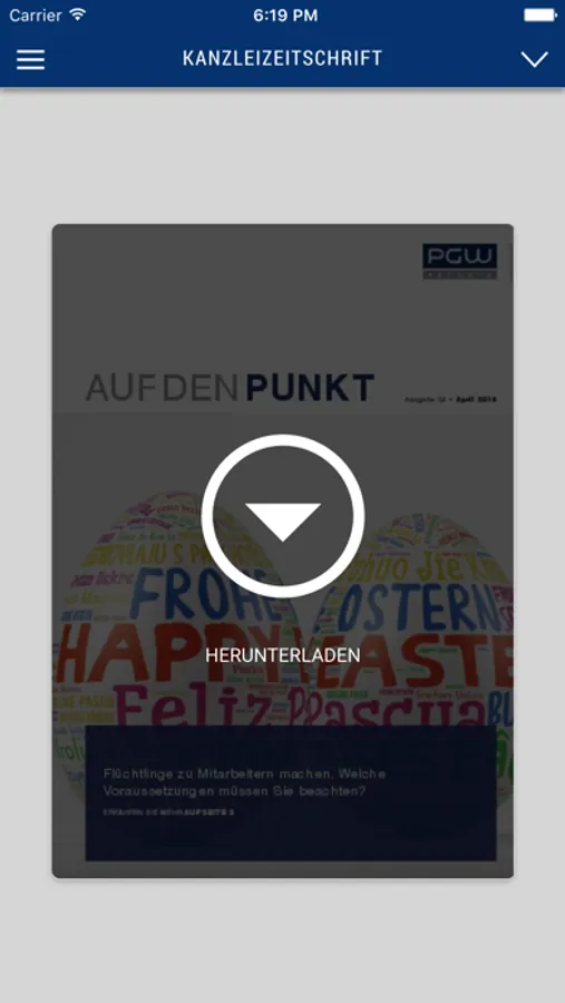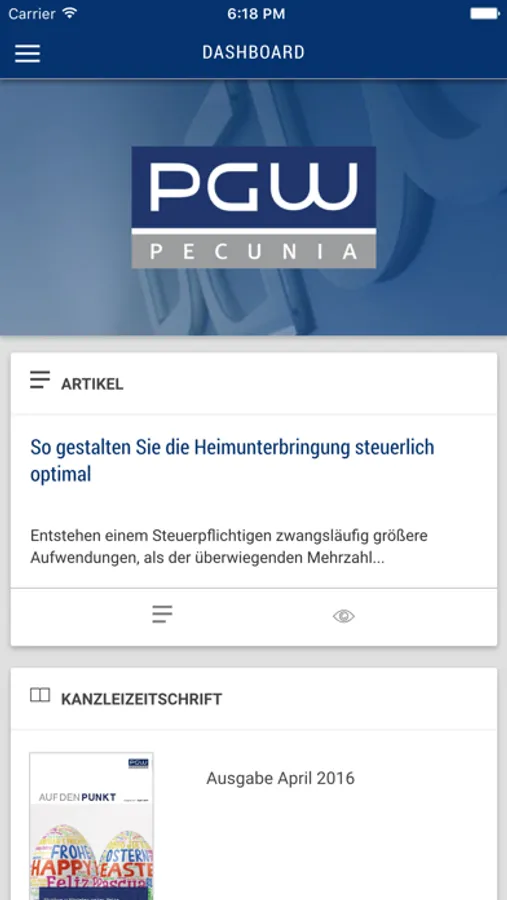 Als innovatives Unternehmen möchten wir mit dieser App Ihrem Wunsch nachkommen, einfach auf aktuelle Informationen und Änderungen in den Bereichen Steuern, Recht und Wirtschaft zugreifen zu können. Darüber hinaus haben wir kleine hilfreiche Funktionen eingebaut. Z.B. eben mal ein Gehalt berechnen? Mit dem Brutto-Netto-Rechner kein Problem! Nutzen Sie die hinterlegte Liste unserer Mitarbeiter, um schnell den besten Ansprechpartner für Ihr Anliegen zu finden. Die Liste ist interaktiv und sortierbar nach Fachgebieten. Ein Kontakt ist einfach hergestellt. Darüber hinaus können Sie unsere Kanzleizeitschrift „Auf den Punkt“ ganz bequem von unterwegs lesen.