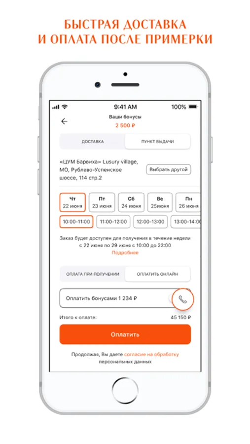 Совершая онлайн-покупки в приложении, клиенты могут быстро получить их в пункте выдачи заказов, примерить в комфортабельных примерочных, а также воспользоваться услугами персонального стилиста.