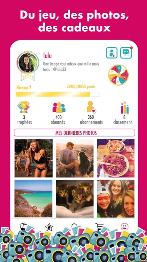 * Faire évoluer ton cercle d’abonnés en partageant tes photos sur tes réseaux sociaux préférés.