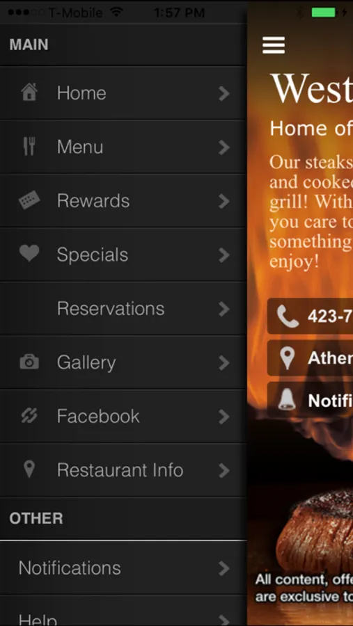 The App from Western Sizzlin provides: