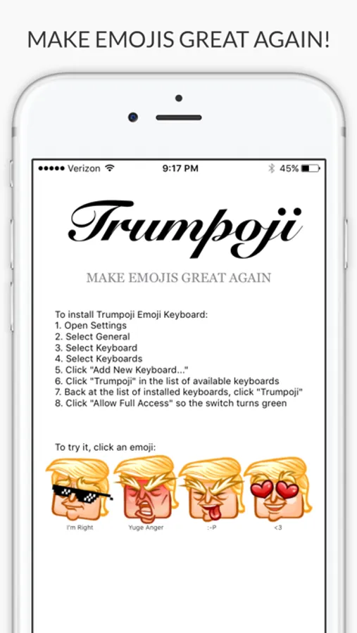 "I built a great emoji keyboard – nobody builds keyboards better than me, believe me. It’s a terrific app that works on all iPhones & iPads with iOS 9+"
