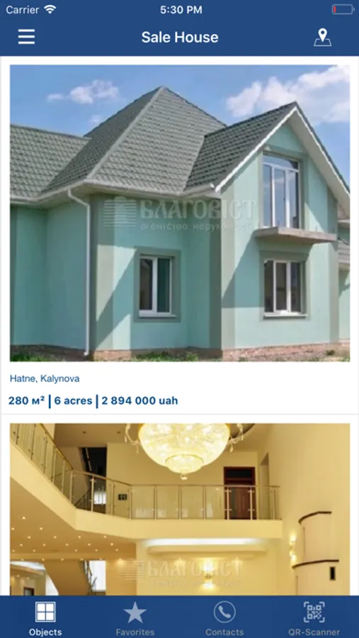 Official iOS- application of Blagovest, Real Estate Agency was created based on daily database of real estate objects offered in the City of Kyiv and Kyiv oblast.