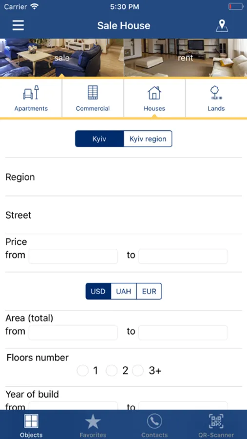 - to find under selected search criteria objects for rent or for sale: houses, cottages, apartments, flats as well as commercial properties.