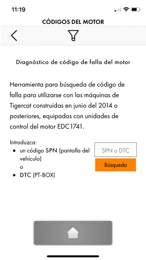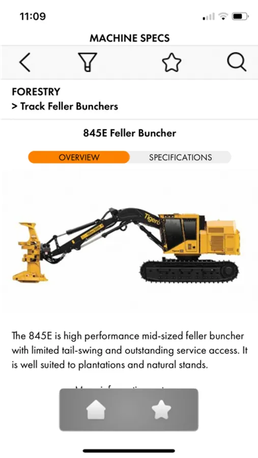 The Tigercat Mobile App, allows you to access machine specifications and look up engine codes. From the home screen Tigercat TV, the Dealer Portal, RemoteLog and LogOn can all be easily accessed.