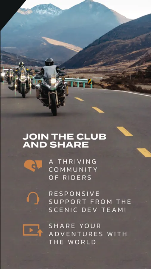 Scenic is the easiest way to ride to destinations unknown. So why not meet some like-minded riders along the way? Connect with thousands of other Scenic app users and buddy up for group trips.