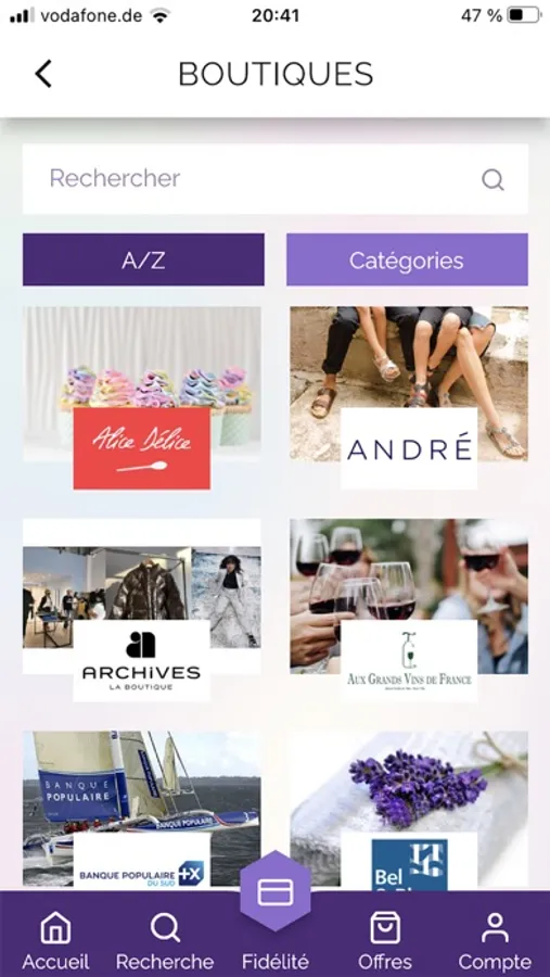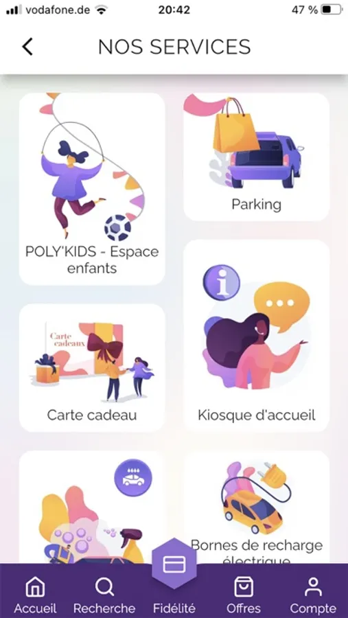 • La liste de toutes les boutiques du centre commercial classées par catégories