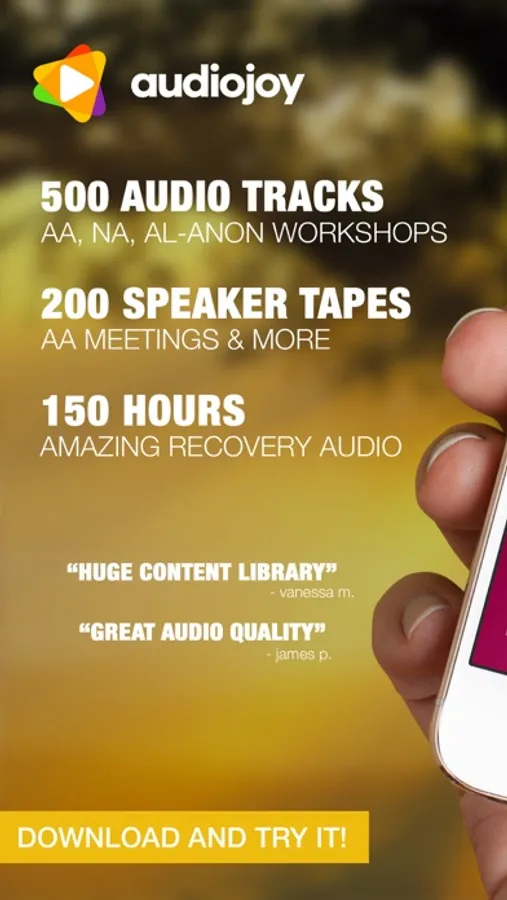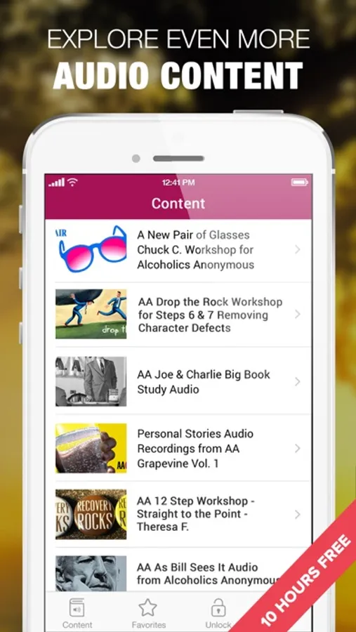 NOTE: You get 2 one hour sessions and much more for free. Unlock and download hundreds more hours of amazing AA content from within the app!