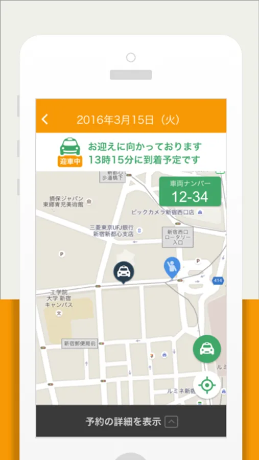ご利用当日、お迎え場所にてキッズタクシーがお待ちしております。乗車後、お子さまがタクシーをご利用頂いている間はタクシーの所在位置をアプリにて確認ができますので安心です。