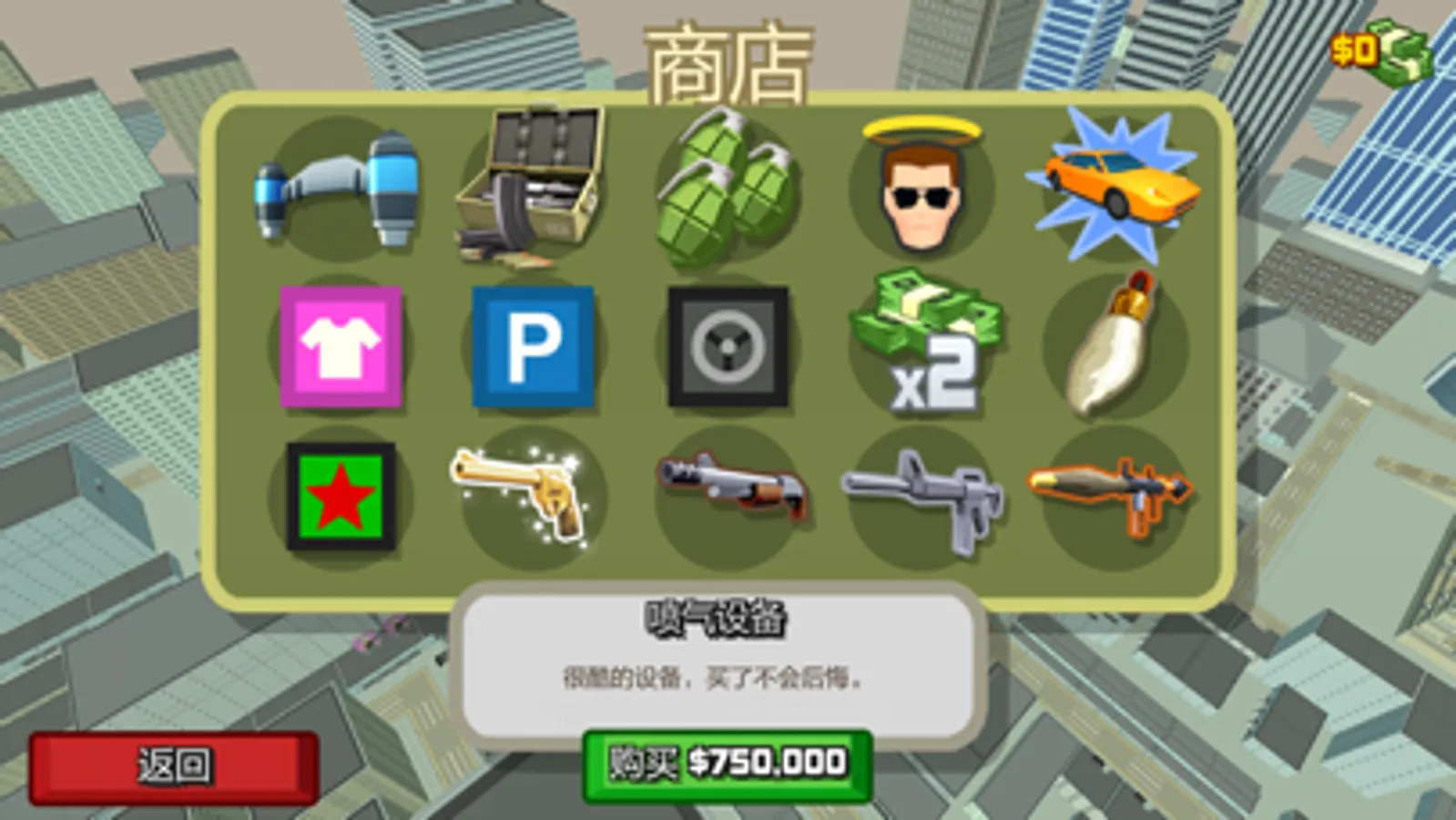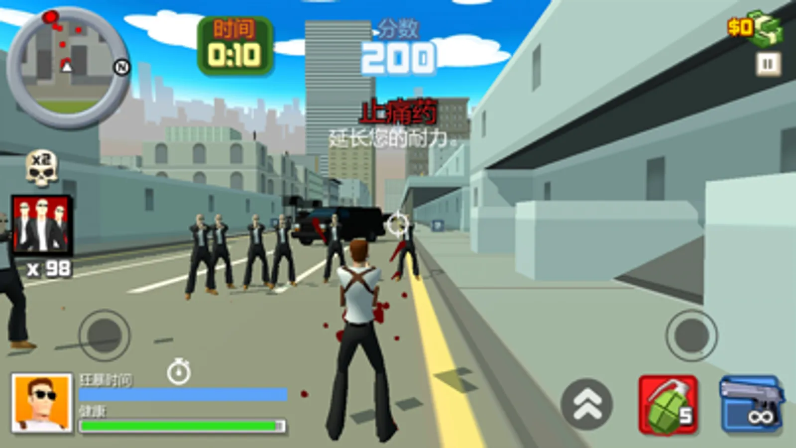 这是一款非常有趣的射击游戏,您需要控制主角,干掉对抗您的黑帮势力,成为城市的地下领导者!游戏采用了卡通风格,打击感突出,画面绚丽,场面非常火爆,您能看到了东西,全部都可以被破坏掉,连大楼都可以炸塌!