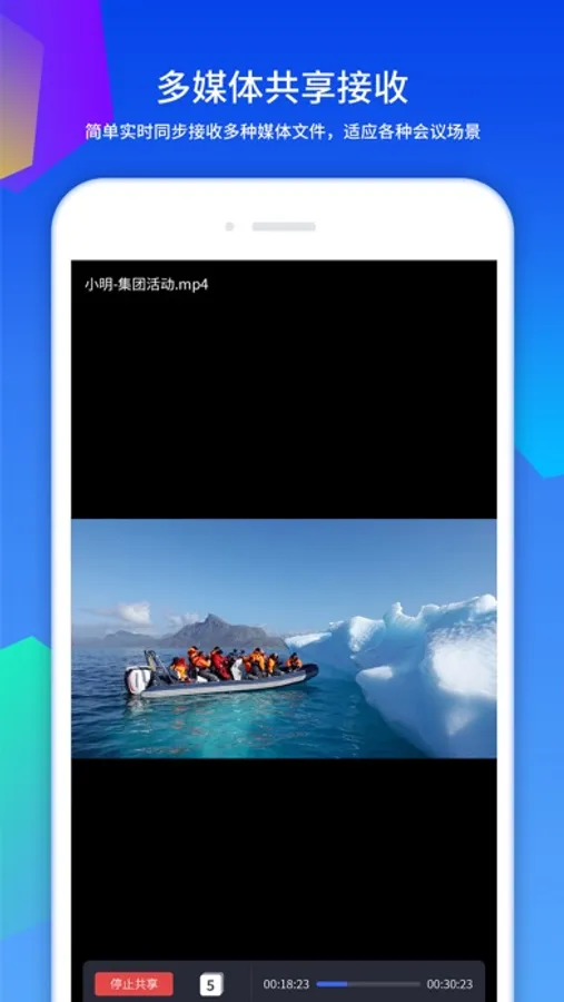 您可以在会议中共享文档和照片,其他参会人可以立即看到。在看文档时,您还可以看到其他参会人的视频。