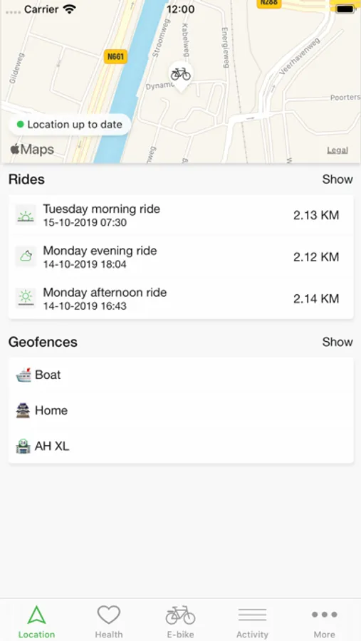Combine the live location function with a geofence. A geofence makes it possible to register when a bicycle enters or exits a certain area. Useful because you get a notification on your smartphone when your partner, child, housemate or family enters a geofence, you have plenty of time to set the table. You can easily set up more than one geofence in the app.