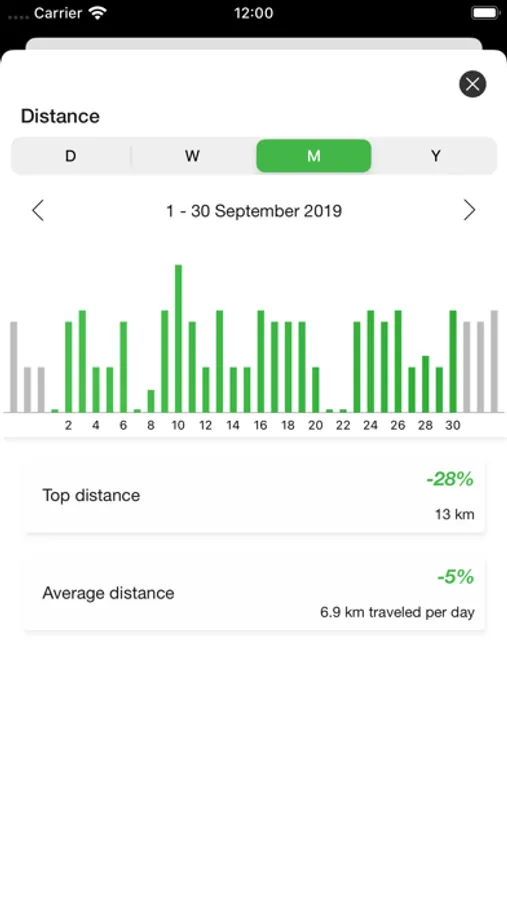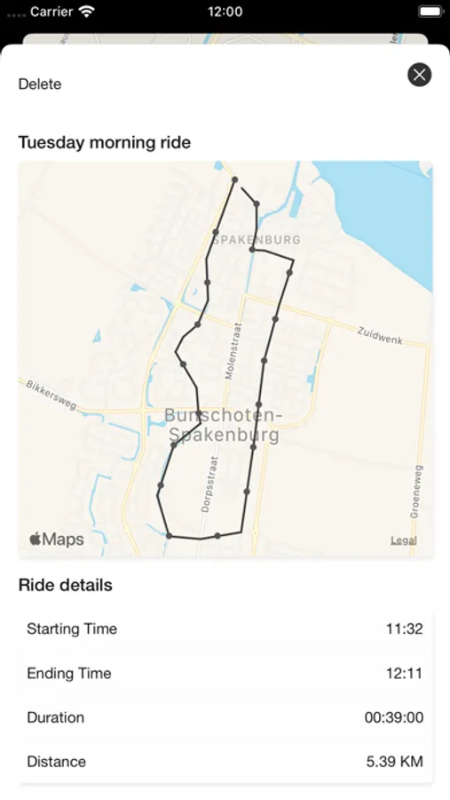 Look at your rides, where and when you've been driving. But also other interesting information such as how much CO2 you have saved with your bike ride compared to a car ride. View statistics on your distance driven, calories burned, CO2 and average speed per day, week, month or year.