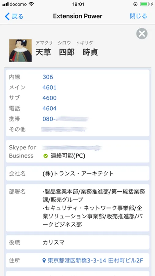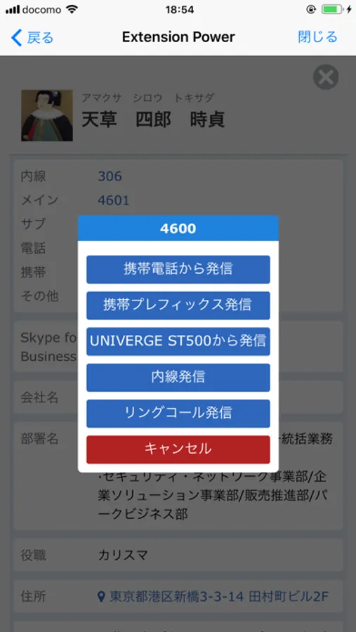 Extension Power内のアドレス帳情報をネットワーク越しに取得・表示する機能です。