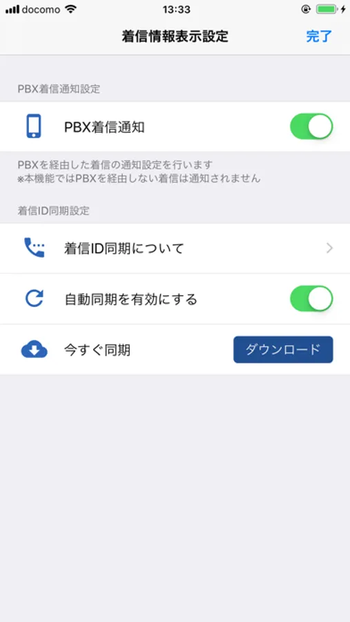 Extension Powerサーバよりアドレス帳情報データを取得後、端末内の秘匿領域に登録し、iPhoneが着信した際に発信者名を表示します。