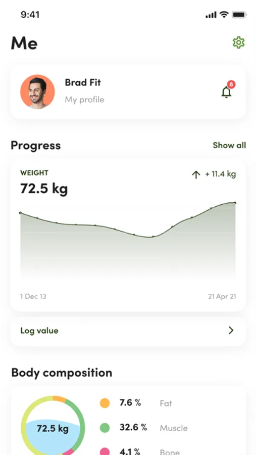 • Je gewicht en andere statistieken invoeren en je voortgang bijhouden
