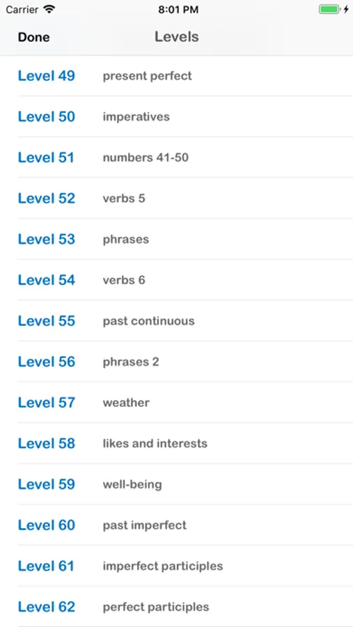 Each game level has 12 letters, words or phrases. There are 66 levels to guide you from reading vowels and consonants to first words and useful phrases.