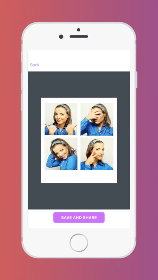 Photobooth allows you to save a photo on your smartphone or send it to your friends via email, Facebook, Twitter or What's up.
