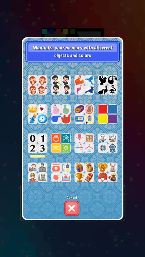 Some objects will be displayed and when you are ready to test your memory ability you can click on the play button and these objects will disappear.