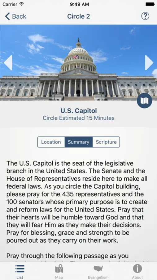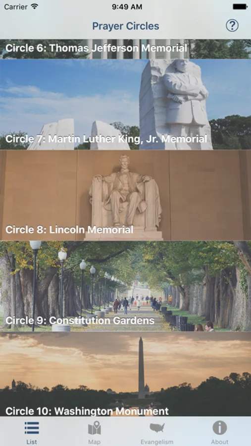 The American Center for Prayer and Revival (ACPR), a ministry of Every Home for Christ, has created this app to be your guide as you pray circles around Washington, D.C.’s famous monuments and institutions. Each landmark has a uniquely symbolic focus for prayer. As you go, use the helpful passages of Scripture that have been carefully selected for each site.