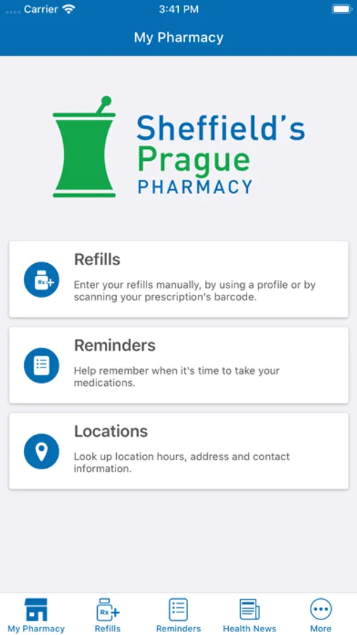 The Sheffield's Prague Pharmacy app allows you and your family to securely communicate with your local pharmacy. Refill your prescriptions with one click, get refill reminders, get discounts at your local pharmacy, get savings on brand drugs and access Pharmacist written pages that help you understand your condition or medications.
